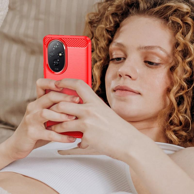 Honor 200 Pro Gebürstete TPU Hülle - Karbonfaser - Rot
