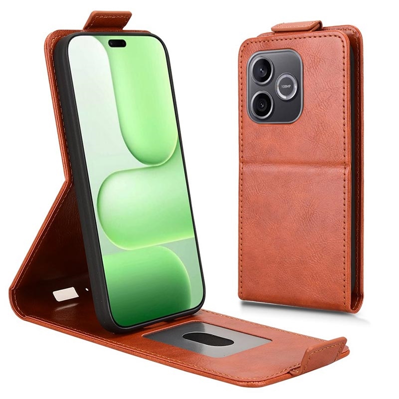 Honor 600 Lite Vertikal Flip Hülle mit Ständer - Braun