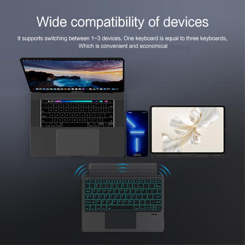 Diese Bluetooth-Tastaturhülle verwandelt Ihr Honor Pad 9 in wenigen Sekunden in einen tragbaren Laptop. Sie können die Bluetooth-Tastatur getrennt von der Hülle verwenden. Eine perfekte Wahl, um das Benutzererlebnis zu verbessern und Ihr Honor Pad 9 in einwandfreiem Zustand zu erhalten, ohne dabei Schaden zu nehmen.