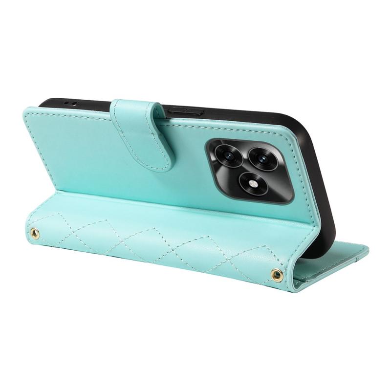 Luxus Gesteppte Wallet Hülle mit Schulter & Handgelenk Strap für Honor X5c Plus - Rhombus-Muster Schutzhülle