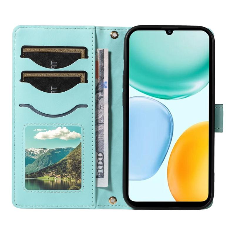 Verleihen Sie Ihrem Alltag Eleganz und Funktionalität mit der Luxury Quilted Wallet Case für das Honor X5c Plus. Diese elegante Tasche wurde für diejenigen entwickelt, die sowohl Mode als auch Funktionalität schätzen. Sie kombiniert hochwertiges Polyurethan mit einem Design im Brieftaschen-Stil - komplett mit abnehmbaren Riemen für einfache, freihändige Nutzung.