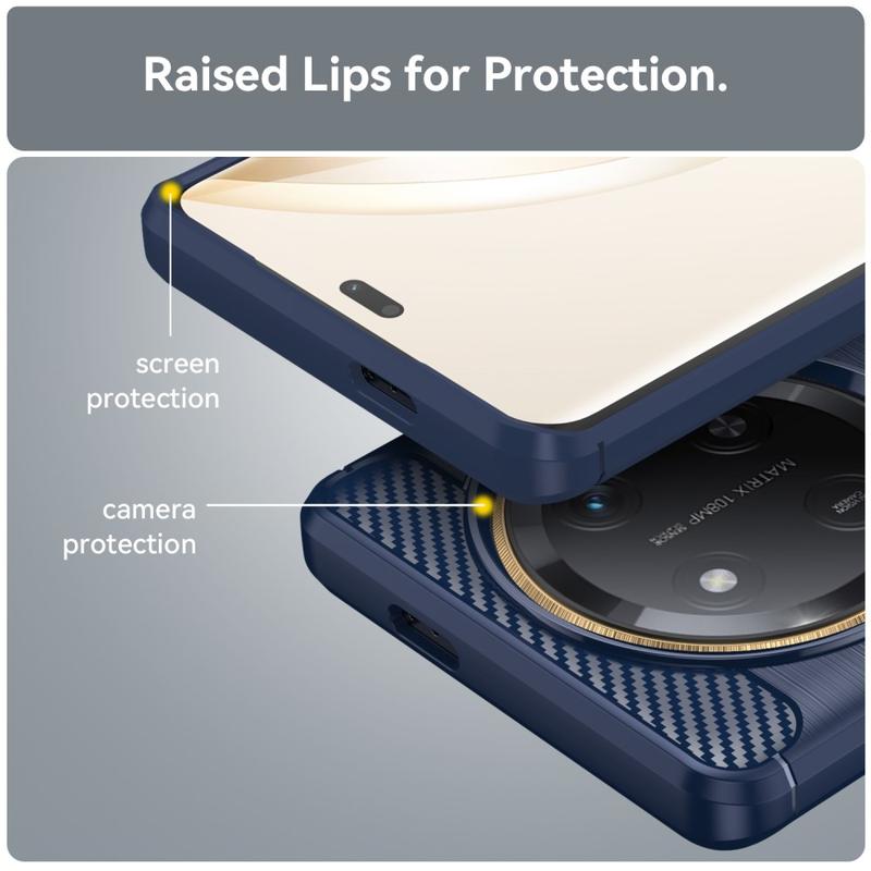 Das Brushed TPU Case schützt Ihr Honor X60 Pro angemessen und verleiht ihm dank des Kohlefasermusters auf der Rückseite einen tollen Stil. Die Hülle schützt Ihr Honor X60 Pro auch vor Überhitzung, indem sie die Wärme ableitet.