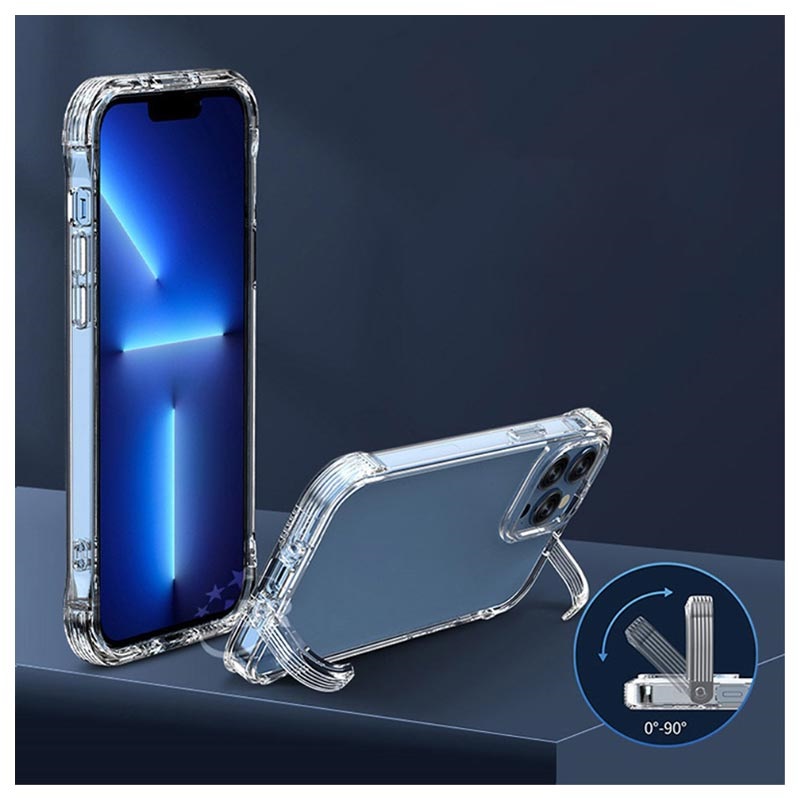 Dieses robuste Hybrid Case ist ein zuverlässiger, unsichtbarer Schutz, der dafür sorgt, dass dein iPhone 13 Pro Max wie neu bleibt. Die stoßfeste Hülle mit Kunststoffrückseite und elastischen Kanten schützt dein wertvolles iPhone 13 Pro Max vor Stößen, Dellen und Kratzern. Darüber hinaus sind alle Ecken dieser Hybrid-Hülle mit einem hakenförmigen, verstellbaren Ständer verstärkt, der für einen verbesserten Fallschutz sorgt und Ihnen ein zusätzliches Freihand-Erlebnis bietet.