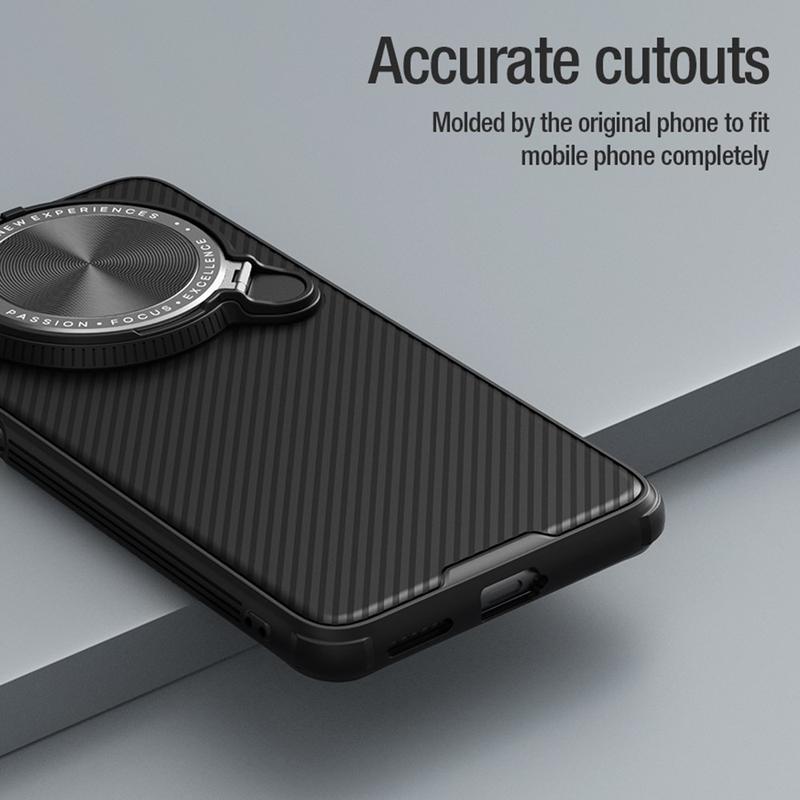 - Dieses außergewöhnliche Nillkin CamShield Prop-Hybridgehäuse besteht aus Kunststoff und TPU-Materialien