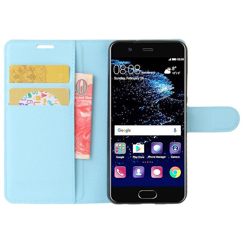 • Die strukturierte Brieftaschenhülle für das Huawei P10 wird Ihr Gerät, Geld und Ihre Karten sicher schützen. Der Rücken lässt sich aufstellen, für einfacheres Anschauen von Medien oder Surfen im Internet. Ein magnetischer Verschluss hält alles sicher an seinem Platz.
