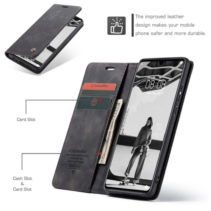 - Eingebaute Magnete halten die Caseme 013 Series Wallet-Hülle geschlossen