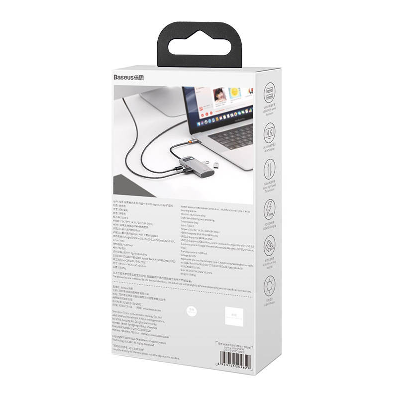 • Hub 4in1 Baseus Metal Gleam Series, USB-C zu USB 3.0 + USB 2.0 + HDMI + USB-C PD