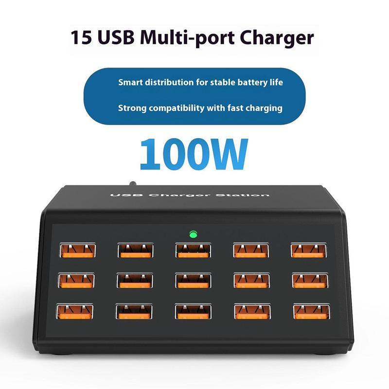 - Riesige Ladekapazität mit 15 Anschlüssen - Gleichzeitiges Laden von bis zu 15 Geräten mit einer Gesamtausgangsleistung von 100W, um sicherzustellen, dass jedes Gerät effizient und stabil geladen wird.