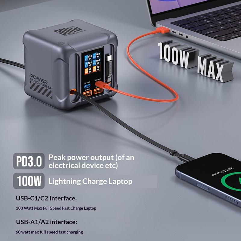 - Bis zu 300W Gesamtleistung zur Stromversorgung mehrerer Geräte über ein einziges Tischladegerät