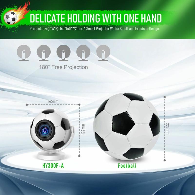 • HY300F tragbarer Projektor in Fußballform - WiFi 6, Android 14, 170 ANSI-Lumen, 720p-Heimkino-Projektor - EU-Stecker