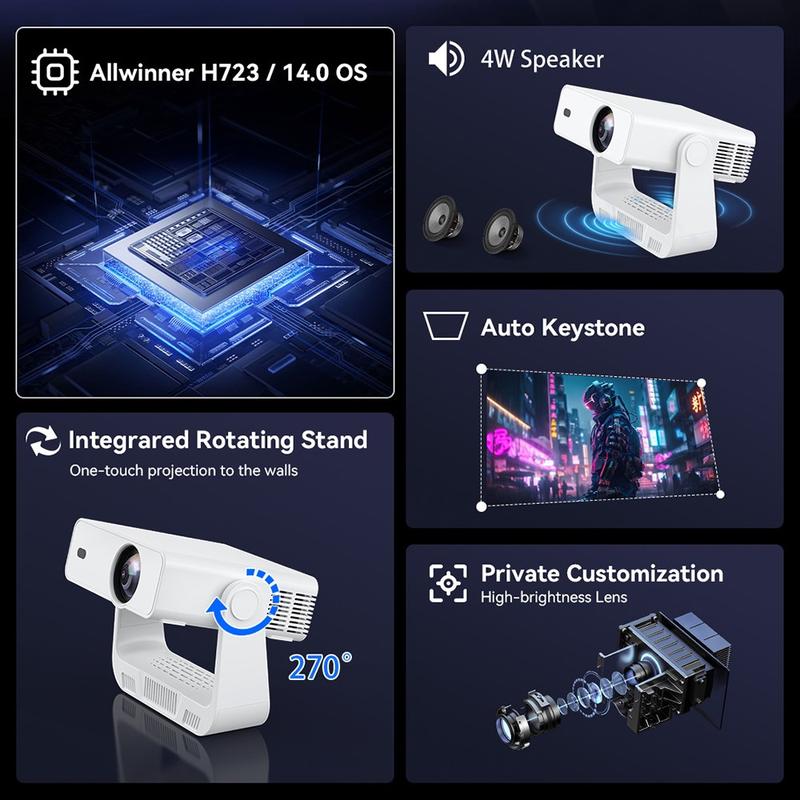 - Tragbarer Miniprojektor mit Android 14-Betriebssystem