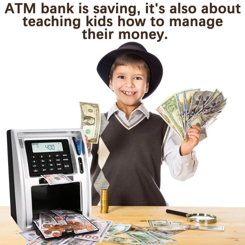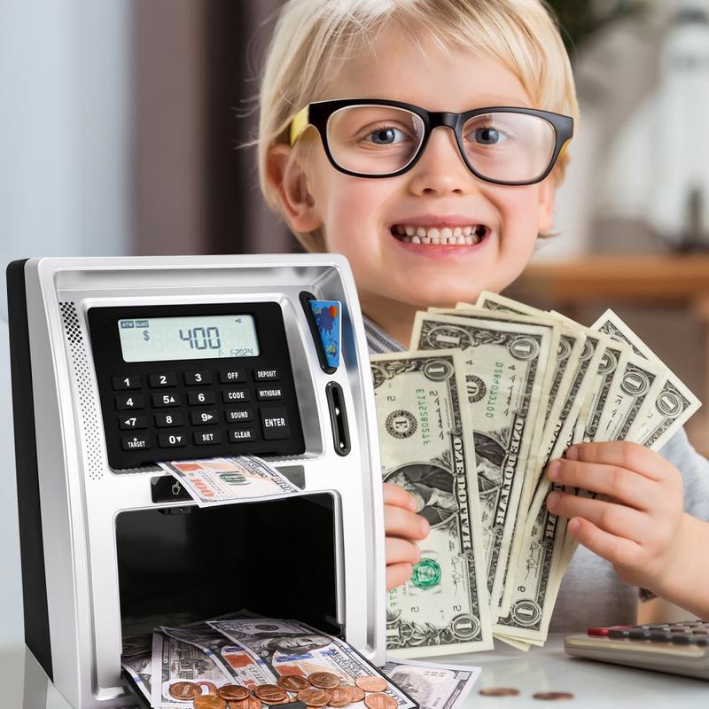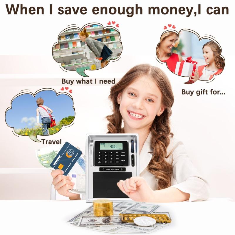 Intelligentes Sparschwein im ATM-Stil für Kinder - Lernspielzeug, automatische Handhabung von Geldscheinen und Münzen