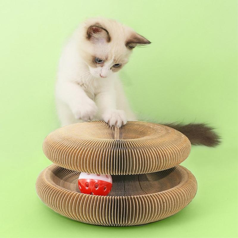 Interaktives magisches Katzenkratzbrett aus Wellpapier mit Glocke und Krallenschleifspielzeug