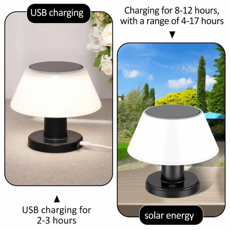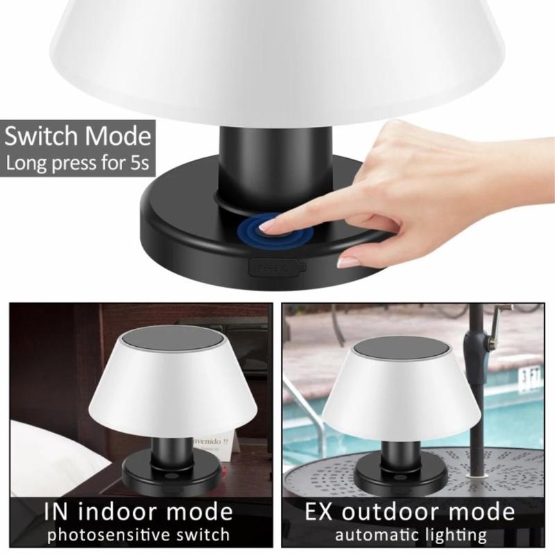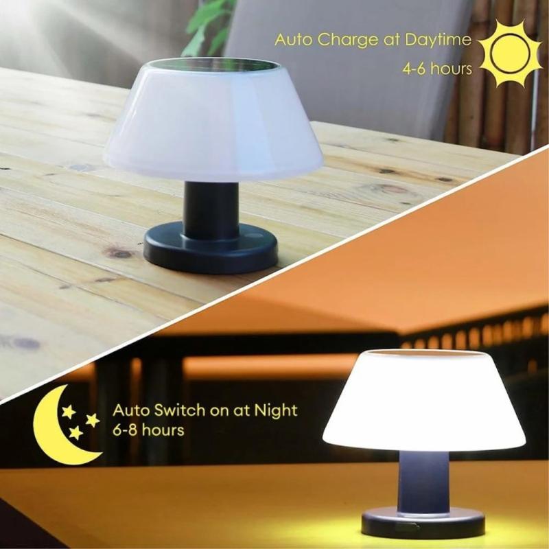 Vielseitige Solar-Tischleuchte für den Innen- und Außenbereich aus robustem ABS und PC mit intelligenter Dämmerungssteuerung, einem leistungsstarken 2200-mAh-Akku und vier dimmbaren Einstellungen - alles in einem kompakten, kabellosen Design, das sich dem Lebensstil anpasst.
