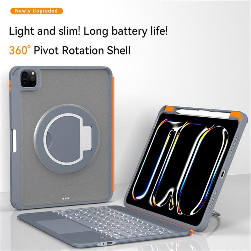 Verwandeln Sie Ihr iPad Pro 11 (2024), iPad Pro 11 (2025) in einen erstklassigen Arbeitsplatz mit der magnetischen Tastatur TU3607, die über einen vollständig drehbaren Ständer, farbig beleuchtete Tasten und eine magnetische Befestigung verfügt. Sie ist perfekt für Profis und Studenten und vereint Funktionalität, Flexibilität und modernen Stil in einem eleganten Design.