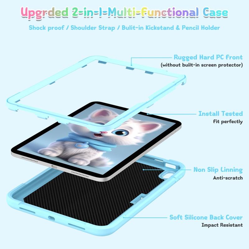 Niedliche Katzen-Hybridhülle mit Kickstand, Schulterriemen und Stylus-Halterung für iPad (2022), iPad (2025)