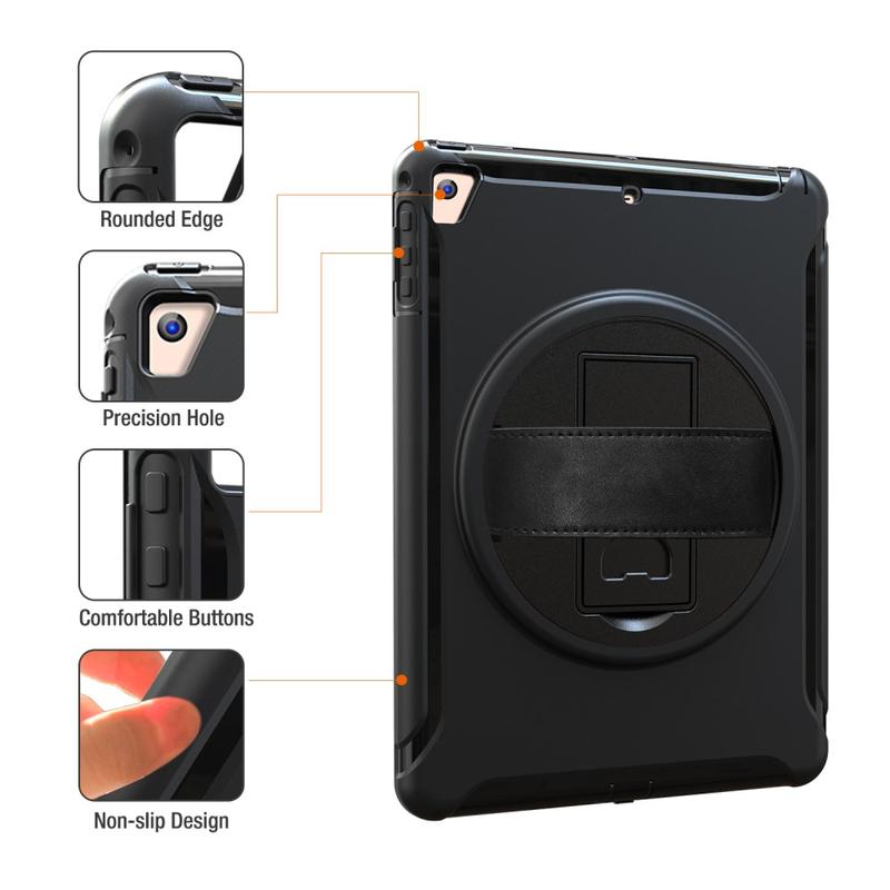 Strapazierfähiges 360° Drehbare Hülle mit Hand- und Schulterriemen für iPad 9.7 (2017), iPad 9.7 (2018), iPad Air, iPad Air 2, iPad Pro 9.7