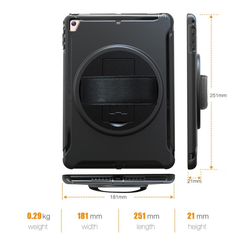 - Strapazierfähige 360°-Hülle mit Handschlaufe für iPad 9.7 (2017), iPad 9.7 (2018), iPad Air, iPad Air 2, iPad Pro 9.7