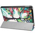 Die Tri-Fold Smart Hülle für iPad 9.7 (2017), iPad 9.7 (2018) ist ein Must-Have Zubehör, wenn Sie Ihr Tablet vor Stürzen, Kratzern und Stoßschäden schützen möchten. Diese praktische Schutzhülle hat eine klappbare Frontabdeckung, die es Ihnen ermöglicht, es als Medienbetrachtungsstativ mit zwei verschiedenen Betrachtungswinkeln zu verwenden. Die Vorderseite hat auch die Smart-Funktion dank der das iPad in den "Schlaf" -Modus versetzt wird, wenn es geschlossen ist, also ist Ihr iPad länger mit einer einzigen Ladung nutzbar.