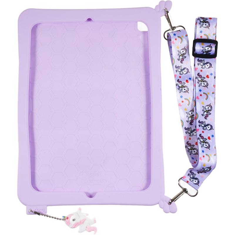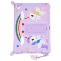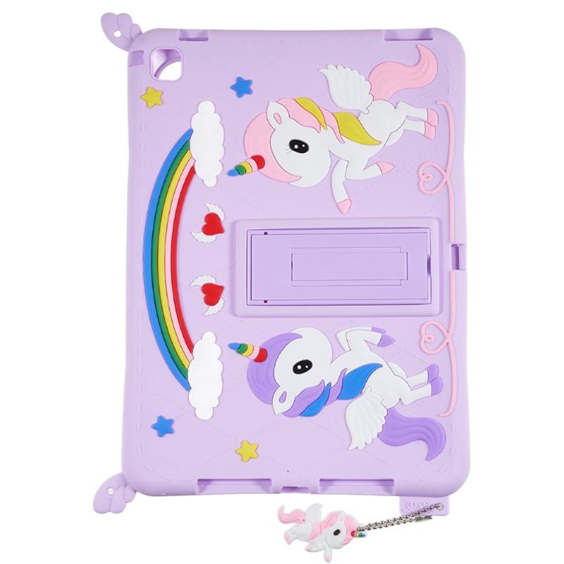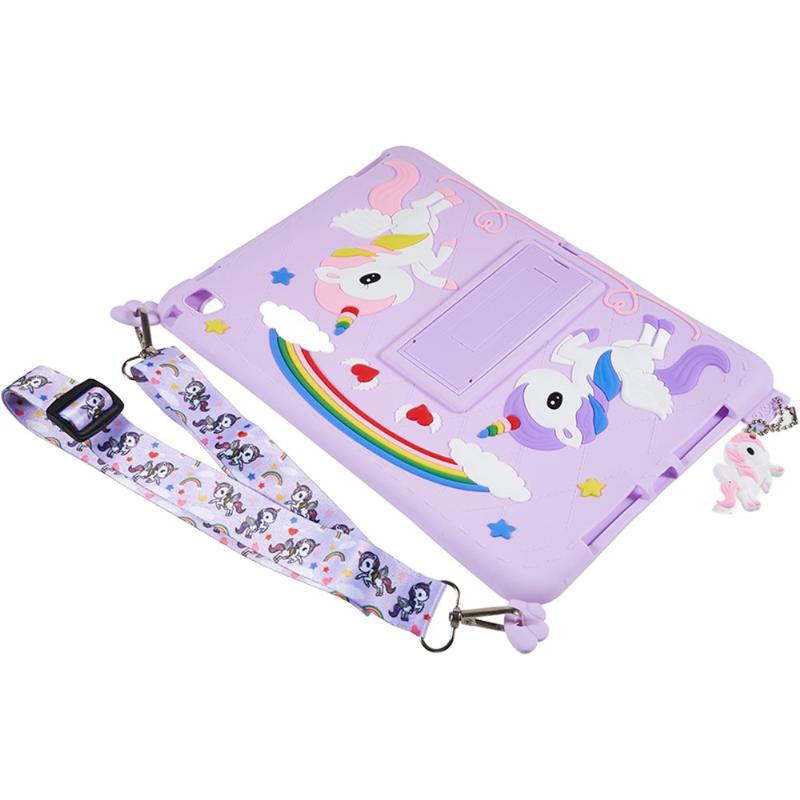 iPad 9.7 2017/2018, iPad Air, Air 2 Niedliche Einhornhülle mit Kickstand und Riemen - Lila