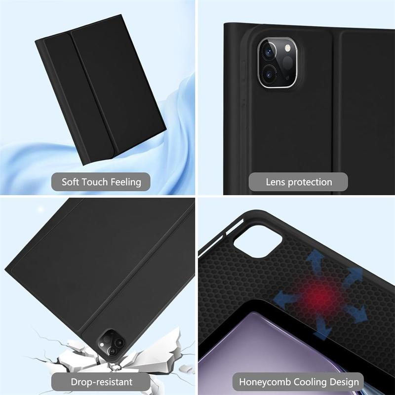 Erweitern Sie Ihr iPad Air 13 2026/2025/2024, iPad Pro 12.9 2022/2021/2020/2018 mit der Bluetooth-Tastaturhülle, einem multifunktionalen 2-in-1-Zubehör, das Schutz, Produktivität und Stil vereint. Diese elegante Hülle aus hochwertigem Polyurethan bietet umfassenden Schutz vor Kratzern, Stößen und Fingerabdrücken und sieht dabei auch noch professionell aus. Die Bluetooth-Tastatur lässt sich kabellos verbinden und ermöglicht ein flüssiges, reaktionsschnelles Tippen, während das integrierte Touchpad eine Multi-Gesten-Steuerung für müheloses Navigieren unterstützt. Dank der beleuchteten Tastatur können Sie auch in schwach beleuchteten Umgebungen bequem tippen. Der integrierte, verstellbare Ständer bietet einen ergonomischen Betrachtungswinkel und eignet sich somit perfekt zum Tippen, Streamen oder Lesen. Diese Tastaturtasche wurde für den Geschäfts-, Reise- oder Alltagsgebrauch entwickelt und verwandelt Ihr Tablet in eine tragbare Workstation.