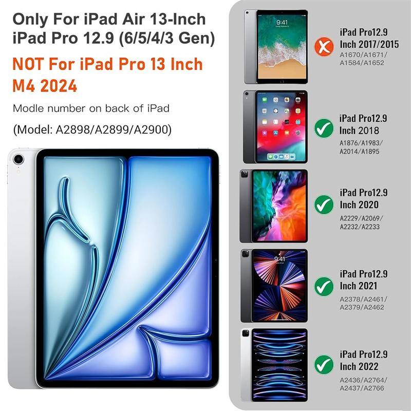 Diese iPad Air 13 2026/2025/2024, iPad Pro 12.9 2022/2021/2020/2018 Tastaturtasche vereint Funktionalität und Eleganz. Sie ist ideal für Berufstätige, Studenten und Reisende, die ein komfortables Tipperlebnis, vollständigen Geräteschutz und intelligente Navigation in einem kompakten Accessoire suchen.