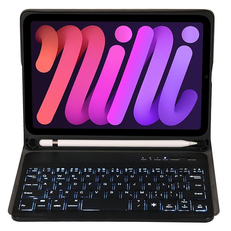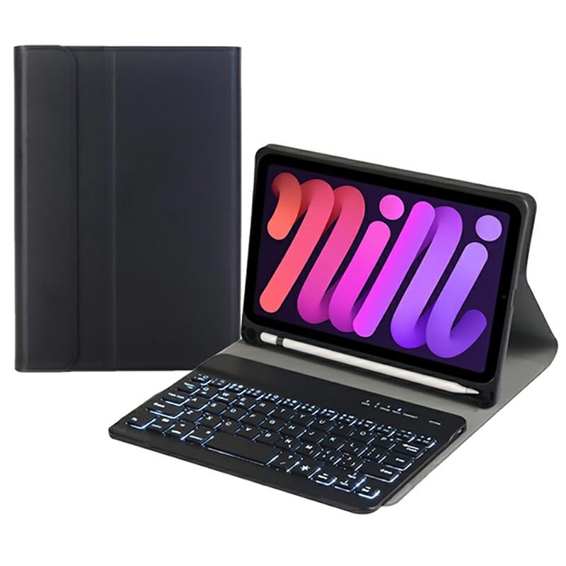 iPad Mini (2021), iPad Mini (2024) Bluetooth Tastaturhülle mit Hintergrundbeleuchtung, Touchpad und Ständer - US-Tastaturlayout