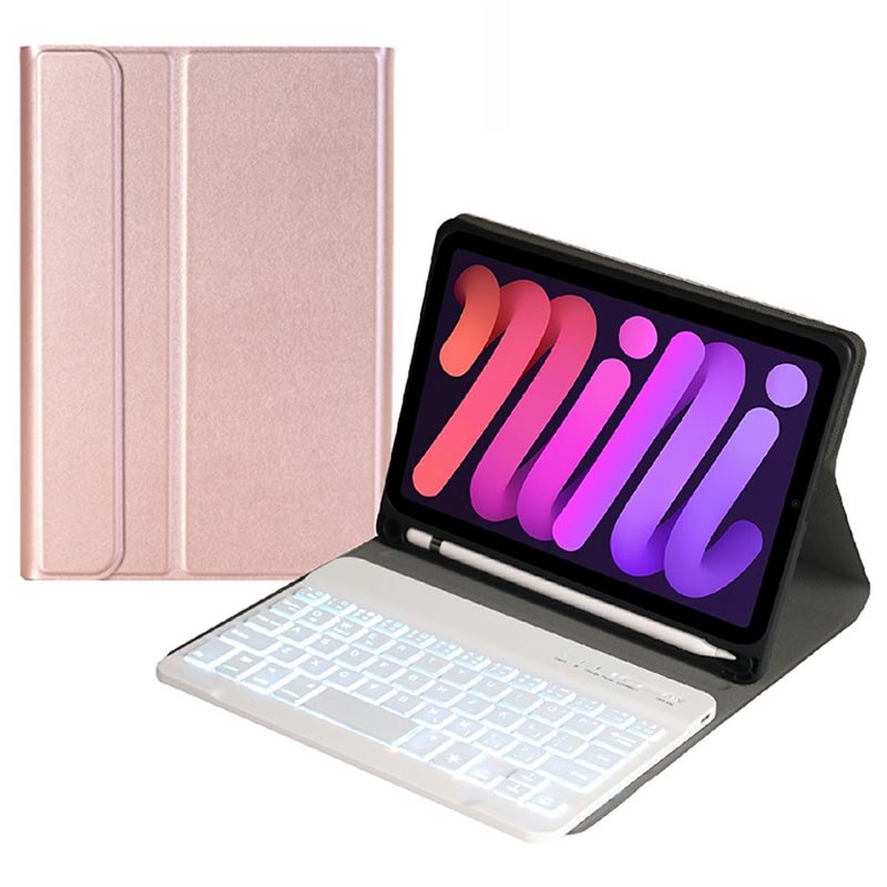 • iPad Mini (2021), iPad Mini (2024) Bluetooth Tastaturhülle mit Hintergrundbeleuchtung, Touchpad und Ständer - US-Tastaturlayout