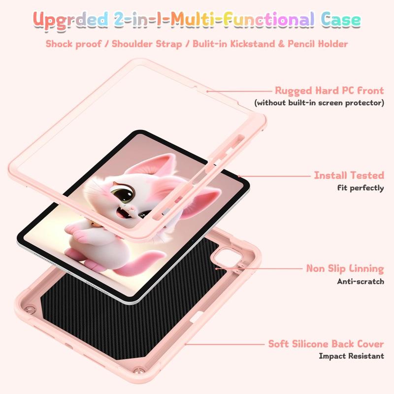 Niedliche Katzen-Hybridhülle mit Kickstand, Schulterriemen und Stylus-Halterung für iPad Pro 11 (2024), iPad Pro 11 (2025)