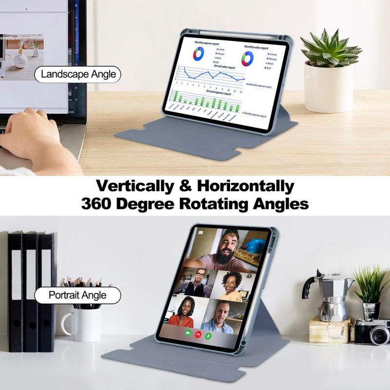 Drehbare Tablet-Hüllen erfreuen sich zunehmender Beliebtheit, da die Bildschirme der Geräte immer größer und für alltägliche Aufgaben unverzichtbarer werden. Die 360°-Drehung bietet ergonomische Vorteile und hilft Ihnen, den idealen Winkel für das Betrachten und Tippen zu erreichen. Darüber hinaus minimiert dieses Design die Belastung des Nackens, da Sie den Bildschirm in der bequemsten Höhe und Ausrichtung positionieren können, was Ihr Tablet-Erlebnis insgesamt verbessert.