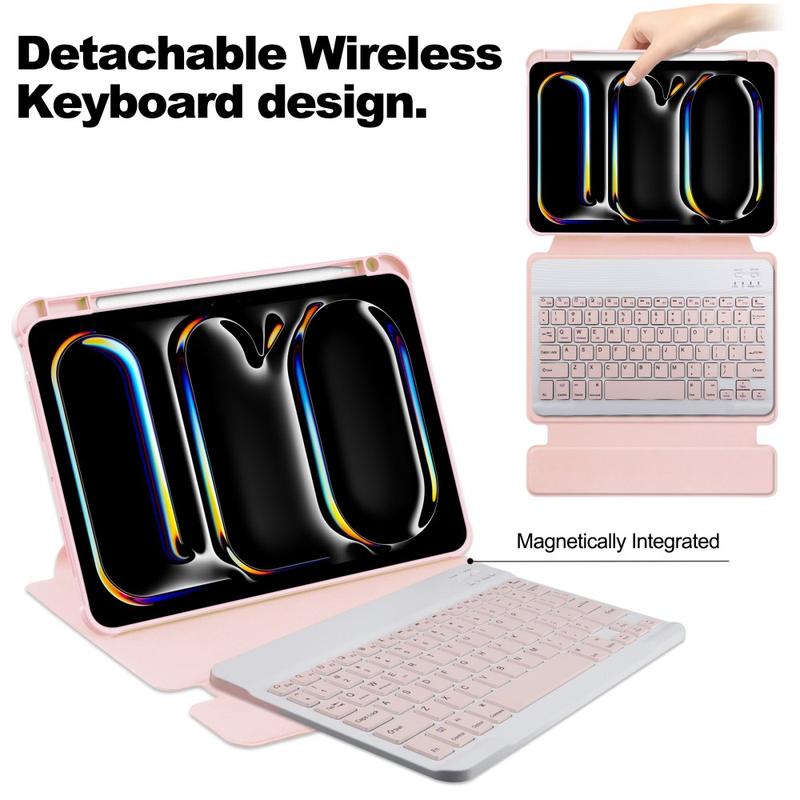 iPad Pro 11 2024/2025 360° drehbares Smart Hülle mit Bluetooth Tastatur - Rosa
