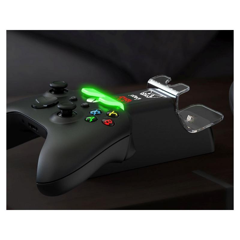 iPega XBS003 Dual-Ladegerät für X-Box Series S-Controller mit zwei Batterien für ein Original-Gamepad. Dank dieser Ladestation wird nie passieren, dass Ihr Controller wird aus dem Saft kommen und Sie müssen warten oder spielen mit einem Ladekabel in den Controller. Das Ladegerät kann zwei Gamepads gleichzeitig aufladen und mit der LED-Anzeige können Sie leicht erkennen, ob der Ladevorgang abgeschlossen ist. Sie werden auch das Problem lösen, wo die Controller nach dem Spielen zu platzieren. Das Ladegerät ist auch sehr gut gestaltet und wird zu Ihrem Spielplatz passen. Zwei mitgelieferte Batterien haben eine Kapazität von 800mAh und das Ladekabel ist diskret unter der Ladestation versteckt.