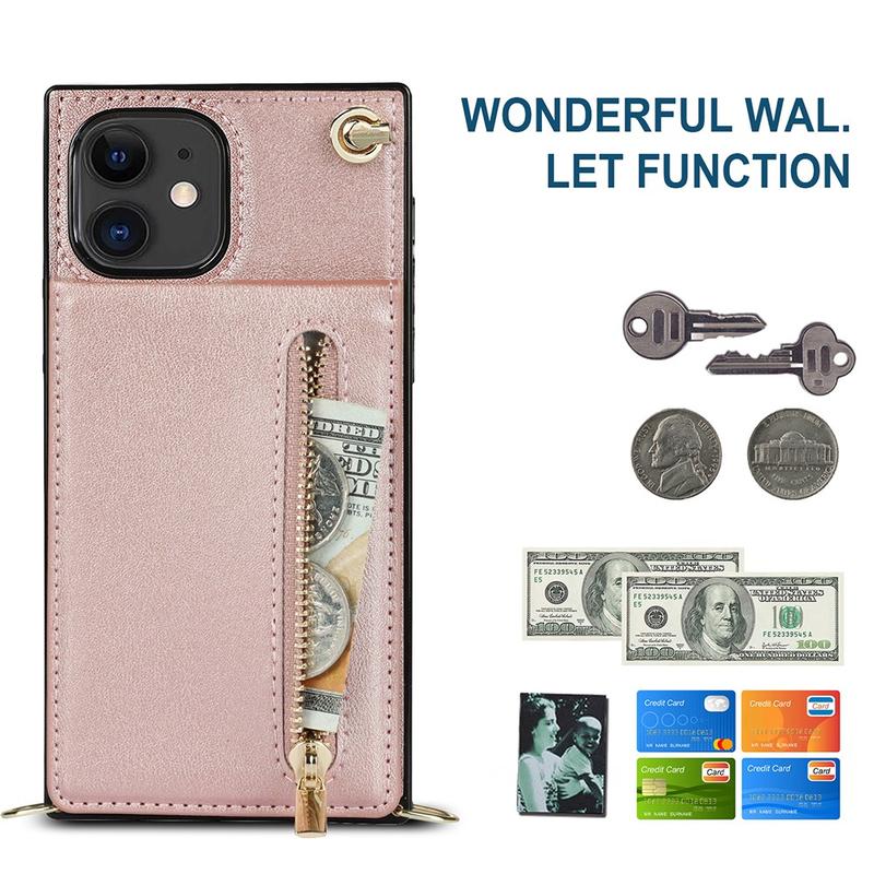 Hybrid-Hülle mit Brieftasche und Umhängeband für iPhone 11