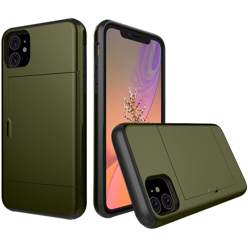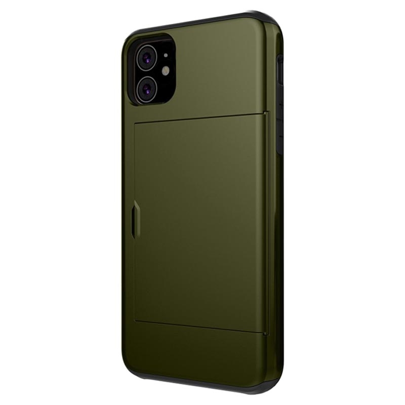 iPhone 11 Hybrid-Hülle mit Verschiebbarem Kartensteckplatz - Armee Grün