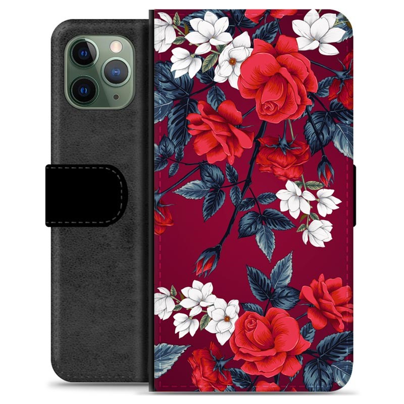 iPhone 11 Pro Premium Schutzhülle mit Geldbörse - Vintage Blumen