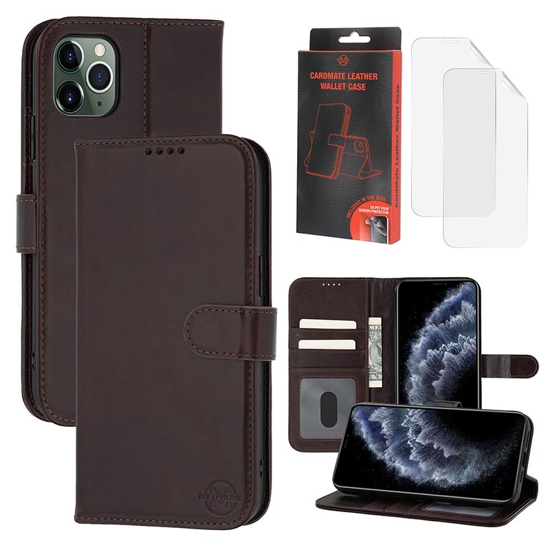 MyTPhone CardMate Premium Leder Wallet Case für iPhone 11 Pro Max - Standfunktion, Kartenhalter, Unterstützung für drahtloses Laden, 2x Displayschutzfolie