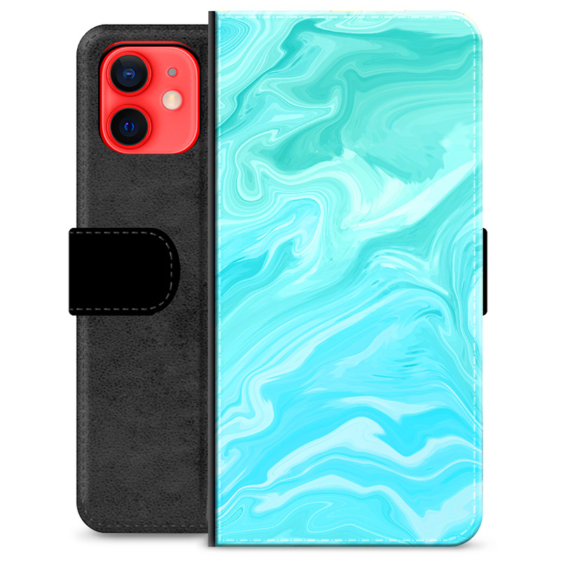 iPhone 12 mini Premium Schutzhülle mit Geldbörse - Blauer Marmor