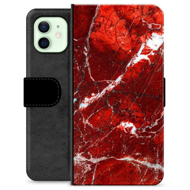iPhone 12 Premium Schutzhülle mit Geldbörse - Roter Marmor