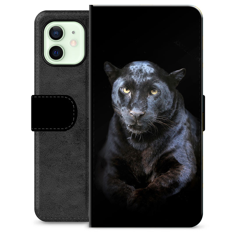 iPhone 12 Premium Schutzhülle mit Geldbörse - Schwarzer Panther