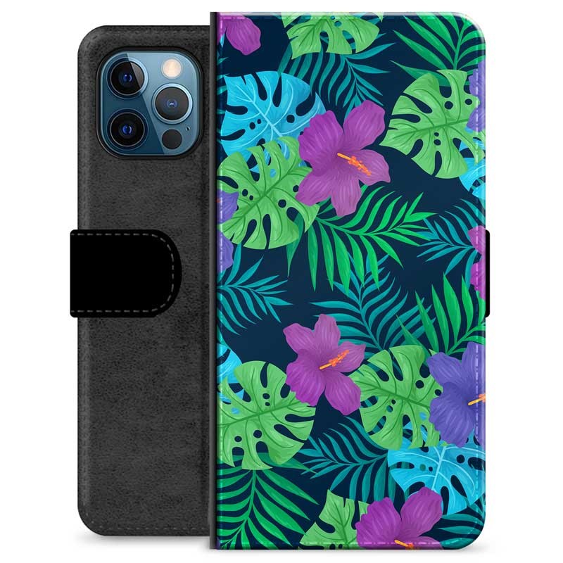 iPhone 12 Pro Premium Schutzhülle mit Geldbörse - Tropische Blumen