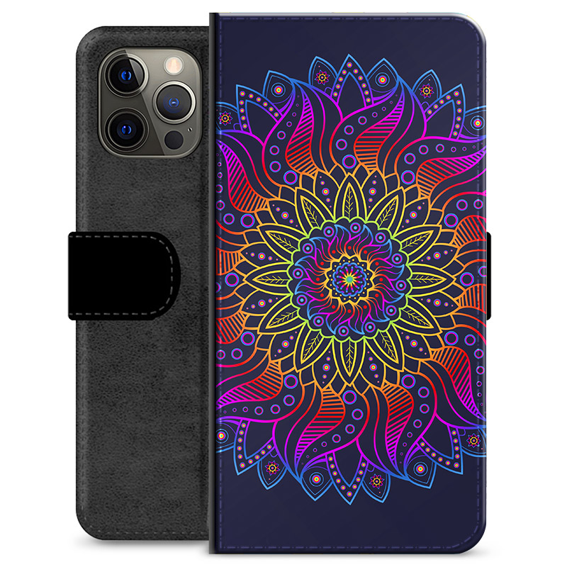 iPhone 12 Pro Max Premium Schutzhülle mit Geldbörse - Buntes Mandala