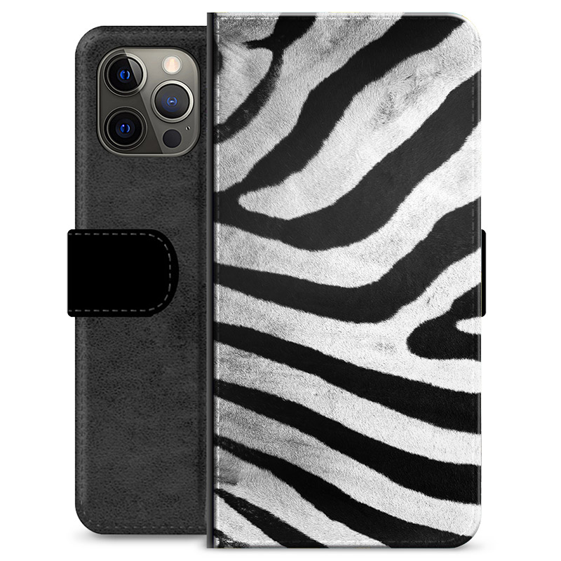 iPhone 12 Pro Max Premium Schutzhülle mit Geldbörse - Zebra