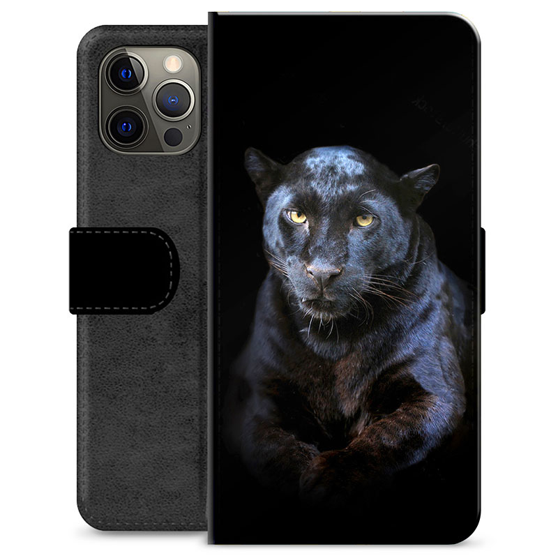 iPhone 12 Pro Max Premium Schutzhülle mit Geldbörse - Schwarzer Panther