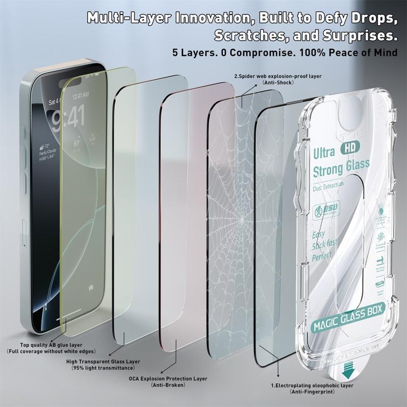 Im Gegensatz zu Standard-Glasfolien bietet diese Schutzfolie militärisch getestete Haltbarkeit und ein intelligentes, staubfreies Installationssystem, was sie ideal für alle macht, die sowohl Schutz als auch Komfort schätzen.