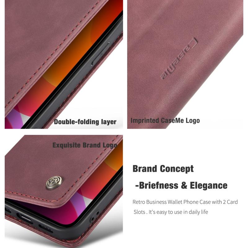 iPhone 12/12 Pro Caseme 013 Serie Schutzhülle mit Geldbörse - Weinrot