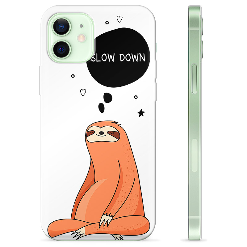 • Die iPhone 12 TPU Hülle "Slow Down" kombiniert stilvollen Schutz mit einem einzigartigen Design, das zum Nachdenken anregt. Die Hülle zeigt einen entspannten Faultier-Motiv, das gemütlich sitzt, begleitet von der beruhigenden Botschaft "SLOW DOWN" in einem Kontrastkreis. Die Illustration ist sowohl verspielt als auch beruhigend und erinnert uns daran, das Leben nicht zu eilig zu nehmen.