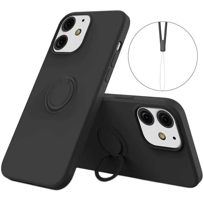 • Liquid Silikonhülle mit Ringhalterung für iPhone 13 - mit Trageriemen