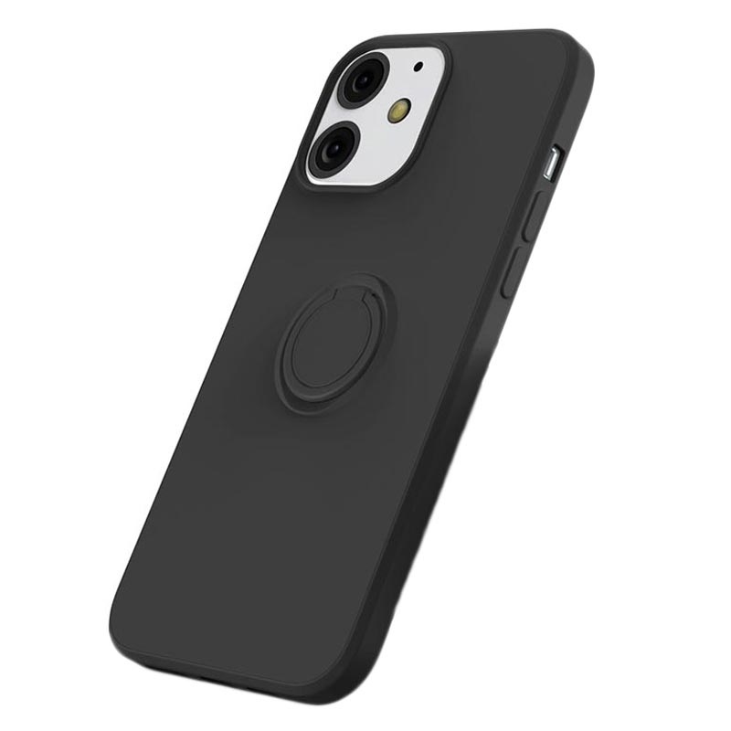 iPhone 13 Liquid Silikonhülle mit Ringhalterung - Schwarz