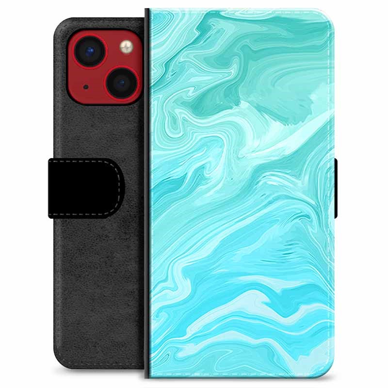 iPhone 13 Mini Premium Schutzhülle mit Geldbörse - Blauer Marmor