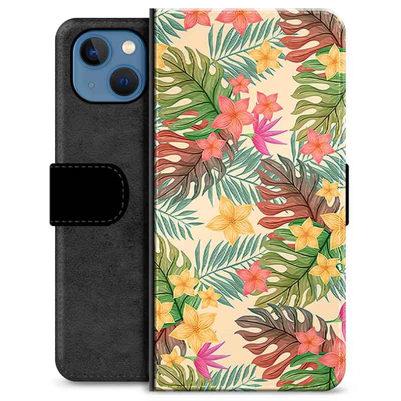 iPhone 13 Premium Schutzhülle mit Geldbörse - Pinke Blumen